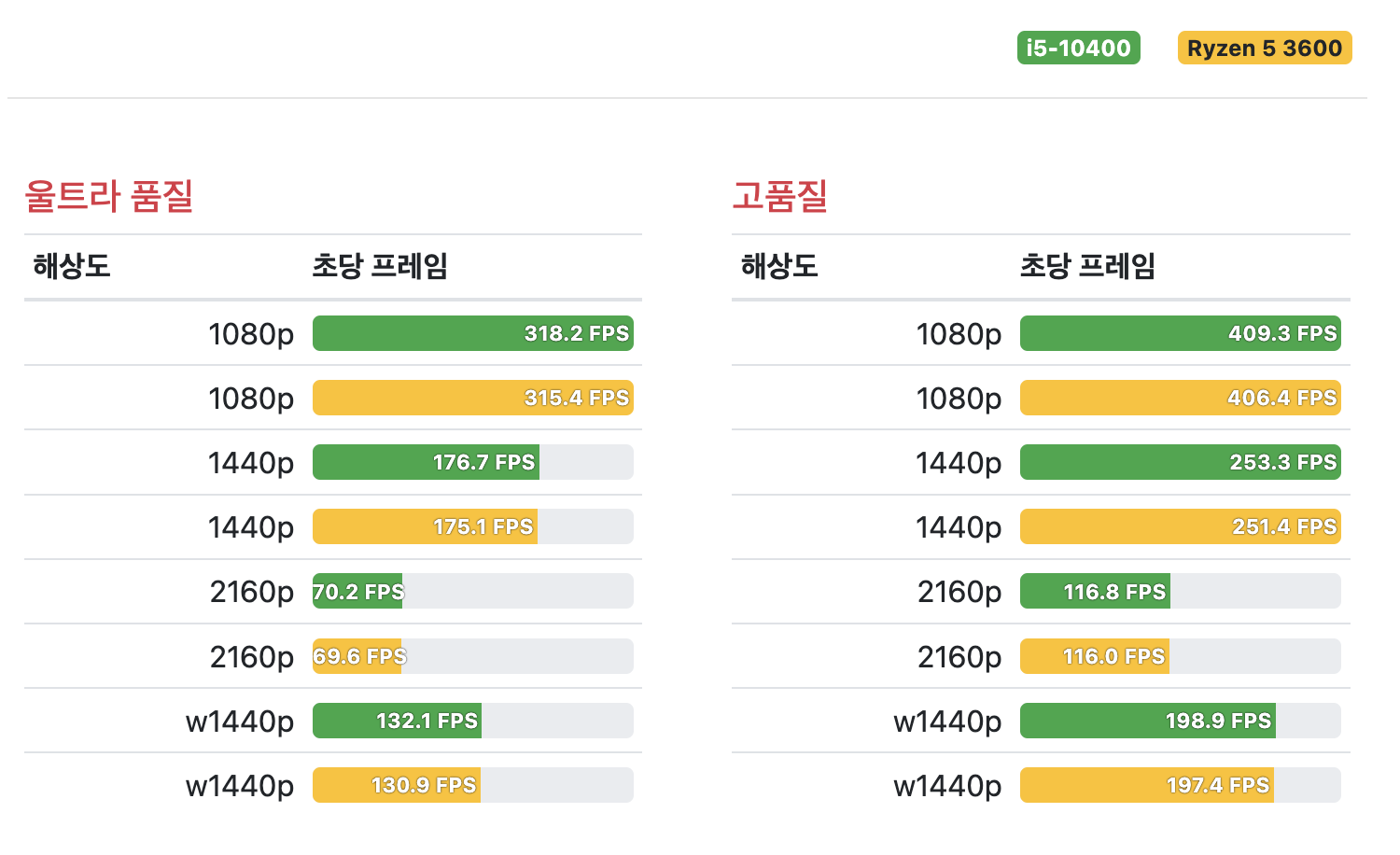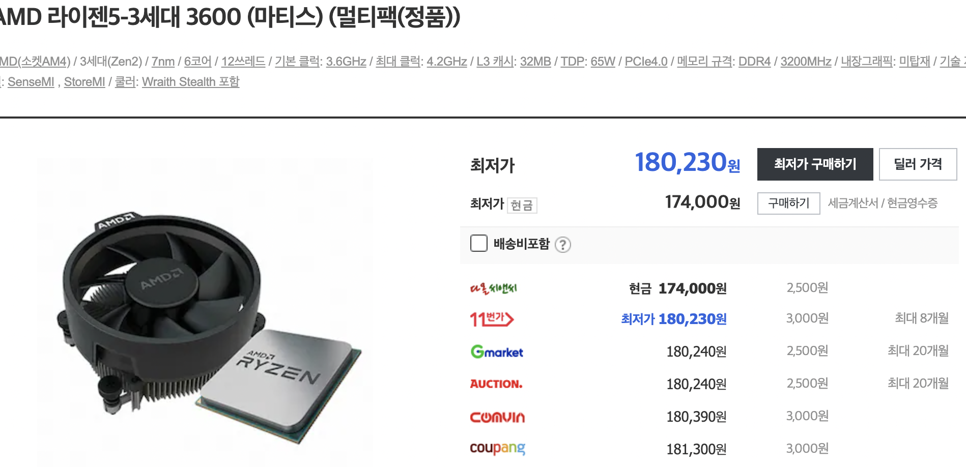 그래픽 카드를 골랐으니 이제 그에 맞는 CPU를 골라보도록 하자. 사실 예산내에서 가격을 맞추기위해 10만원대 cpu라인업을 살펴보게 되었고, i5 10 10400f(코멧레이크S)와 AMD Ryzen5 3 3600(마티스) 두 제품이 눈에 들어오게 되었다. 두 제품을 한번 비교해보자.