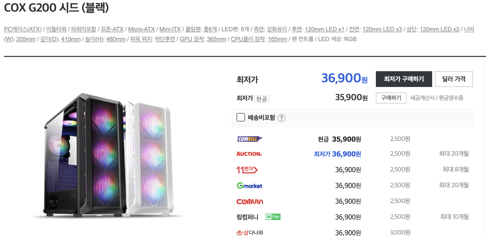 미들타워 이상의 쿨러와 간지가나는 케이스를 찾던 도중 적당한 가격대의 제품을 찾을 수 있었다.